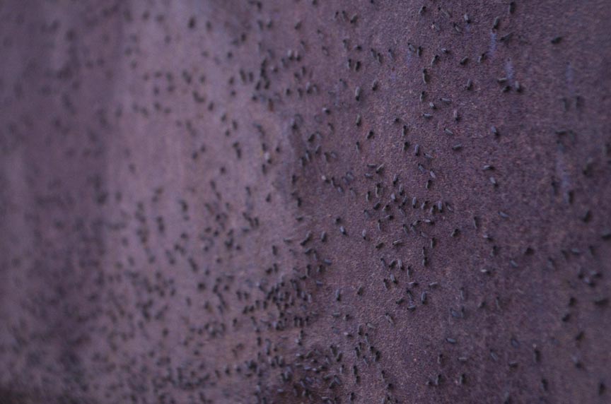Took a walk along the river the other evening, waiting out the sunset. The gnats were no big deal, till I started walking across the footbridge over the river. The dense cloud of them extended all the way across the bridge, nearly 100 yards. By the time I got to the other side, they were crawling all over me. In my eyes, nostrils and mouth. Down my shirt and in my coat. I can only imagine how many wound up lodged in my lungs.