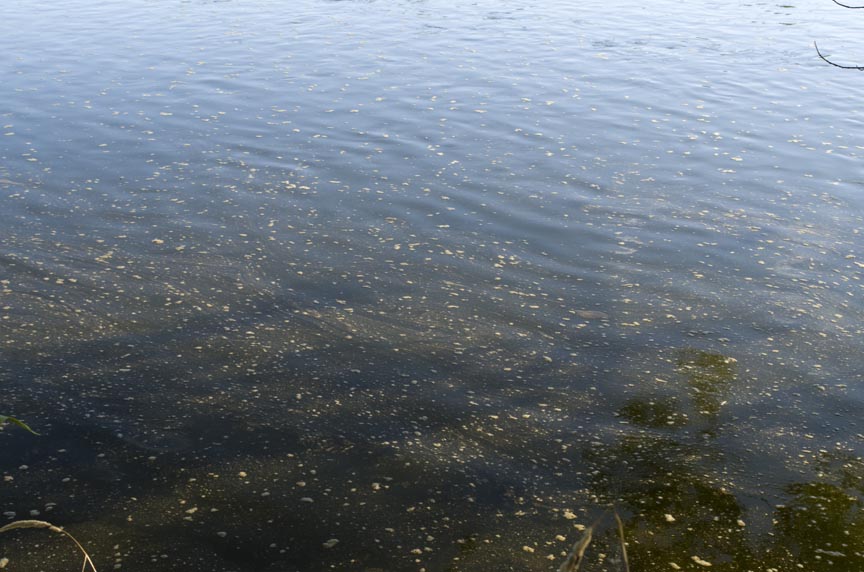 As I drove drove the road along the river, I stopped to talk to a couple that lives in one of the houses along this stretch. They said this had appeared a couple of days earlier. They also mentioned that it was here last year, but we all agreed this was considerably worse then last year. They live on one of the best spots for smallies, but the guy said he won’t throw a lure in that.