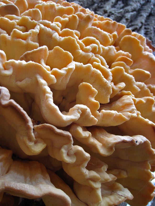 I know it’s edible when it first sprouts like this and I toyed with the idea of taking a big chunk of it home for dinner. But the tree is a good 75 years old, growing at the base of this garbage dump for it’s whole life and I didn’t have the heart to hack off a chunk of this beautiful fungus that struggled to come out this time of year.